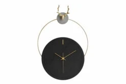 Une tête de cerf avec ses bois majestueux en or, sur une plaque grise, attire le regard sur cette horloge murale design ‘THE BLACK ANTLER.’. en métal. Ses élégantes aiguilles en or sont particulièrement mises en valeur par le cadran noir. Cette horloge décorative décorera votre salle à manger avec une exclusivité aristocratique.