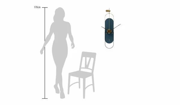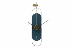 Cette horloge murale au design ovale, fabriquée en métal dans un bleu noble, est entourée de deux anneaux élégants en or et en noir, qui dégageront une énergie positive dans votre salle à manger et décoreront votre maison de manière extravagante. Les imposantes aiguilles de l’horloge décorative ‘THE BLUE PLANET.’ sont réalisées en bois de noyer et fixées à une plaque en or. L’horloge vous donnera l’heure de manière fiable.