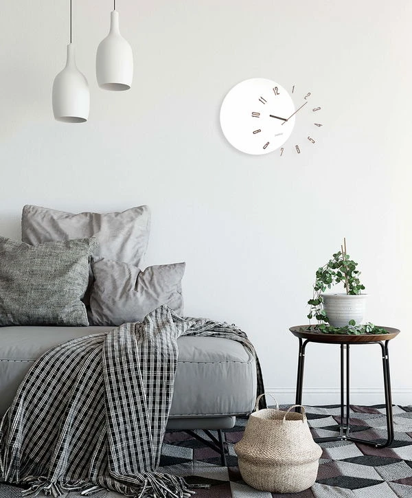 Au dos de l’horloge se trouve un système de suspension pratique qui vous permet de fixer votre nouvelle horloge décorative rapidement et en toute sécurité au mur. La pile AA nécessaire à son fonctionnement n’est pas fournie avec l’horloge.