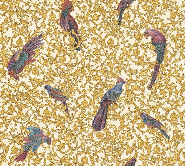 Plusieurs perroquets colorés se sont installés sur des vignes à l’éclat doré et forment un spectacle fascinant. Avec un fond lumineux, le papier peint design ‘Versace Birds 3’ de la collection de la marque de mode italienne Versace est particulièrement gai et apporte de la vie dans votre salon. Avec ce papier peint intissé, vous inspirez vos visiteurs !