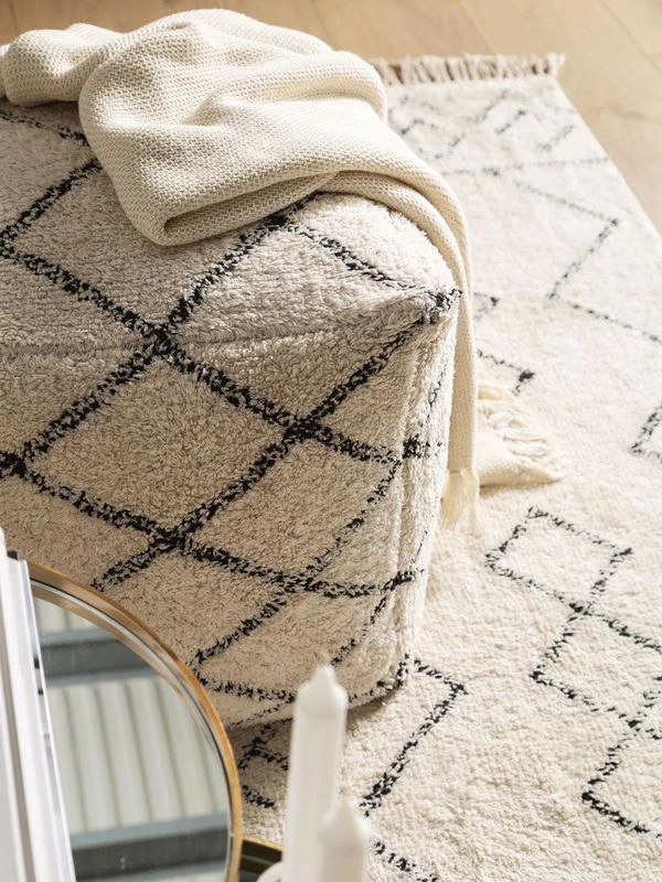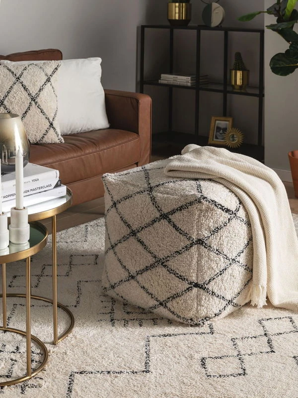 Le Pouf ‘Naomi’ se présente de par son excellent travail d’artisanat comme un véritable phénomène déco.