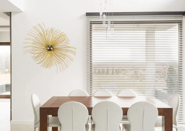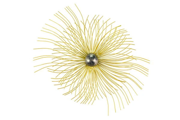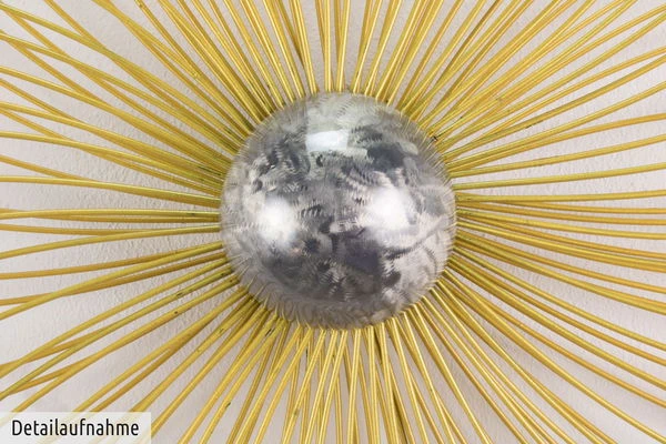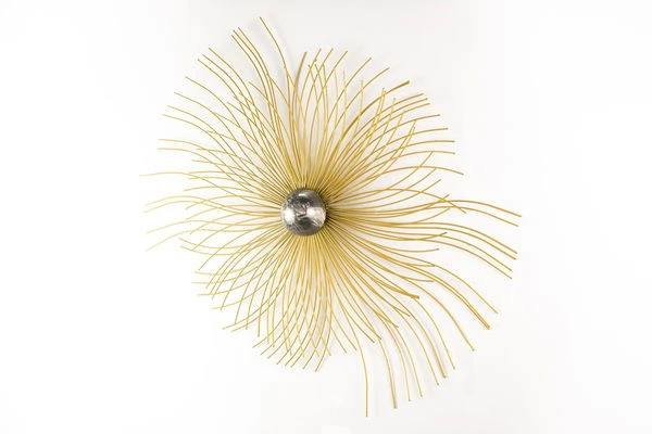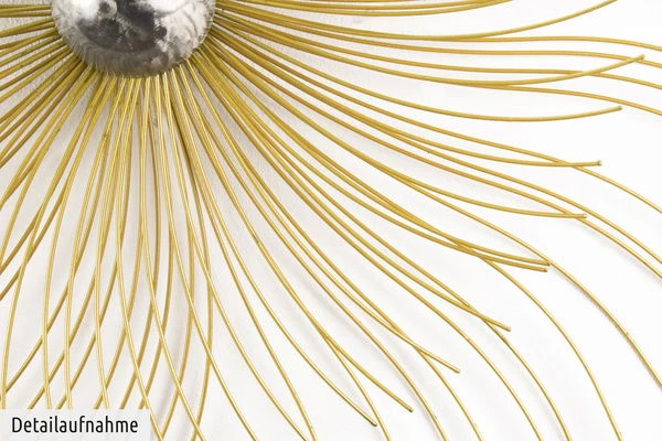 Cette sculpture abstraite accrochée à votre mur vous donnera un sentiment d »Apensanteur’. Ses nombreuses tiges métalliques fines disposées en une sorte d’éventail et associées à un ton doré chatoyant apporteront une touche d’élégance à votre salon ou à votre bureau. Renforcez l’effet accueillant et chaleureux de votre style d’ameublement intérieur grâce à cette décoration murale, et garantissez-vous d’obtenir de nombreux compliments pour votre excellent goût artistique !