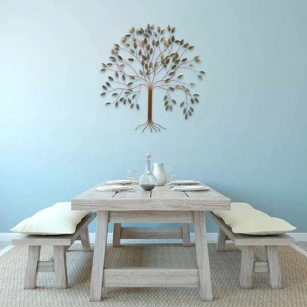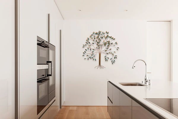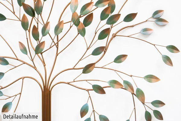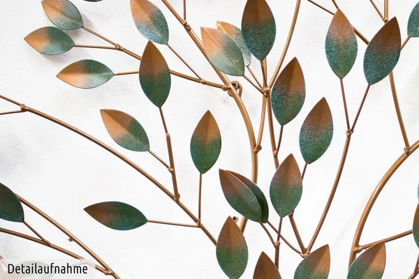La décoration murale en métal ‘Arbre de vie’ a été soudée, pliée, poncée et polie à la main par notre artiste. La décoration murale tridimensionnelle en métal brille dans des couleurs changeantes et attire à coup sûr l’attention sur votre mur.