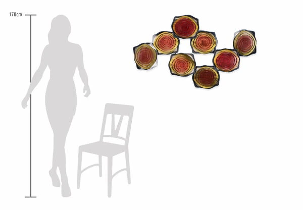 Flottant comme des nénuphars dans un étang, les boucles sont disposées dans la sculpture murale extravagante’Lily Pads’. Le passage du jaune au rouge orne les formes abstraites, qui combinent à la fois des éléments ronds et angulaires. Cette coloration spéciale met en valeur la plasticité de l’image métallique de luxe, qui est un accessoire impressionnant dans votre salon ou votre chambre à coucher et qui vous fascinera ainsi que vos invités.