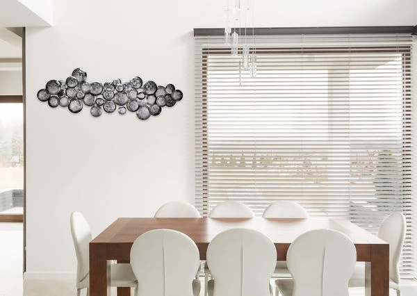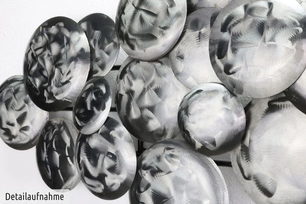 Avec des ronds de différentes tailles disposés en effet relief, la déco murale XXL ‘Pulsating’ est une affirmation de votre joie de vivre. Les surfaces argentées chatoyantes de cette sculpture murale donnent un accent lumineux à votre salon et en est une pièce unique sur votre mur. Surprenez vos invités avec cette décoration d’intérieur moderne !