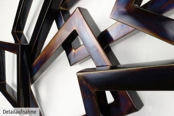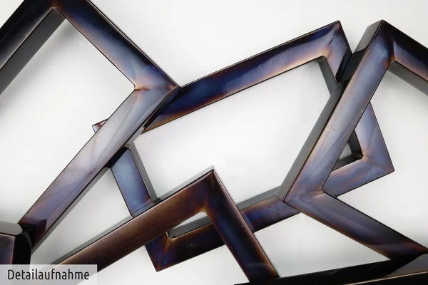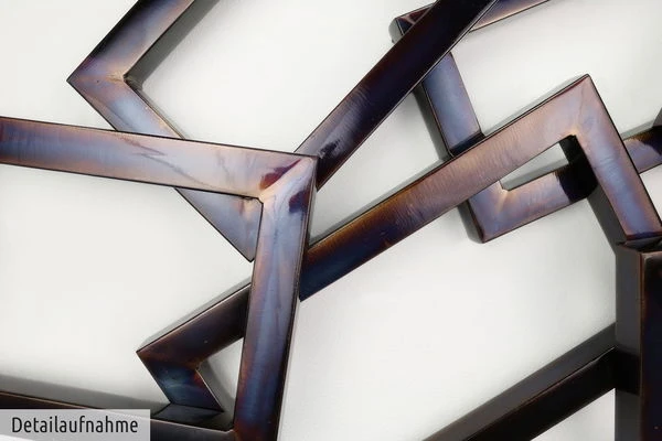 La décoration murale en métal ‘Time will tell’ a été soudée, pliée, poncée et polie à la main par notre artiste. La décoration murale tridimensionnelle en métal brille dans des couleurs changeantes et attire à coup sûr l’attention sur votre mur.