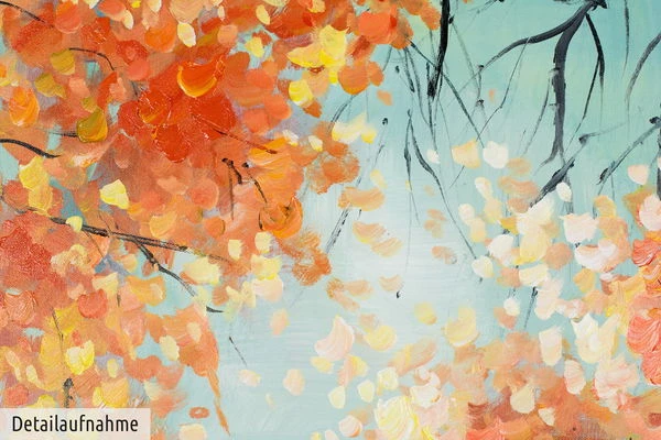 La ‘Danse de la cime des arbres’ prendra d’assaut le mur de votre salon ou de votre bureau. D’en bas, vous pouvez voir jusqu’à la hauteur aérée où se déroulent des événements audacieux. Les feuilles rouge-orangé suivent la chorégraphie arbitraire du vent et créent leur propre hymne par leur bruissement. Vous serez étonné par l’effet de cette peinture et aurez l’impression de vous promener dans une avenue automnale aux allures cinématographiques. Sublimez votre décoration intérieure et captivez vos visiteurs avec ce splendide tableau!