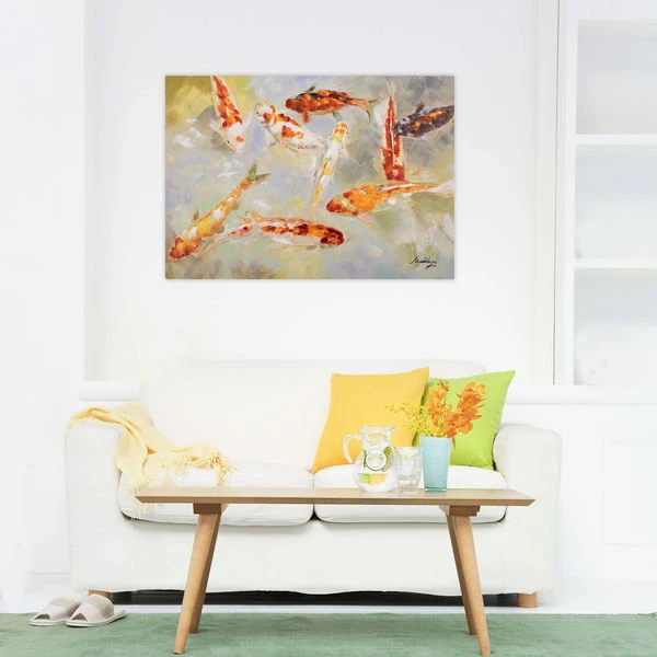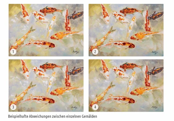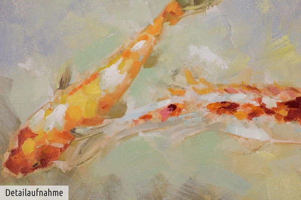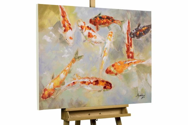 Sur le tableau acrylique peint à la main ‘Étang plein de köis’, vous pouvez sentir chaque coup de pinceau, ce qui permet de reconnaître au premier coup d’œil la qualité supérieure de l’œuvre d’art. Chaque chef-d’œuvre peint à la main est en outre complété par la signature de l’artiste..