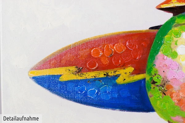 Sur le tableau acrylique peint à la main ‘Le Paradis du Surfeur’, vous pouvez sentir chaque coup de pinceau, ce qui permet de reconnaître au premier coup d’œil la qualité supérieure de l’œuvre d’art. Chaque chef-d’œuvre peint à la main est en outre complété par la signature de l’artiste..