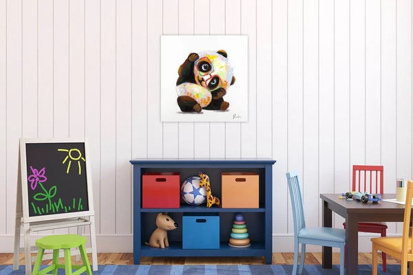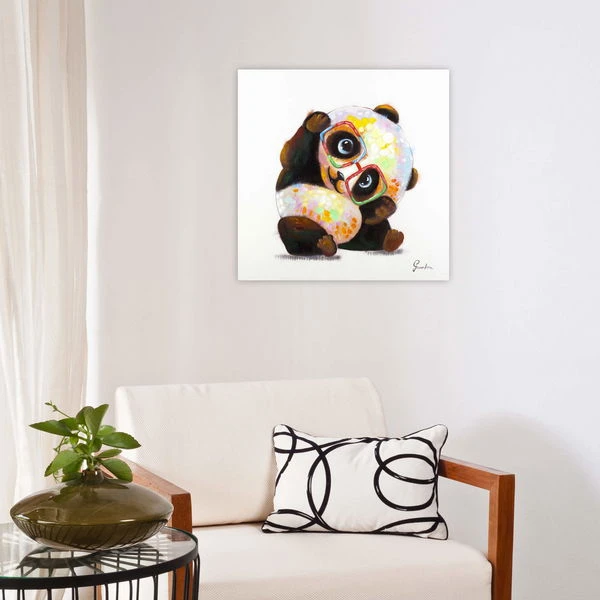 Le sympathique ‘Panda Hipster’ sourit à son spectateur lui fait un signe de la main. Les grands yeux du bébé panda brillent d’un bleu étincelant leur charme attire systématiquement tout le monde. Le choix des couleurs sur cette œuvre d’art enchantera les plus jeunes constitue une décoration murale parfaite pour une chambre d’enfant. Par ailleurs, les lunettes carrées de l’animal cadrent parfaitement avec le reste du tableau. Jour après jour, vos invités s’arrêteront devant cette peinture acrylique prendront du plaisir à se trouver dans votre maison.