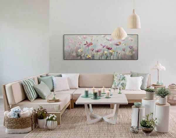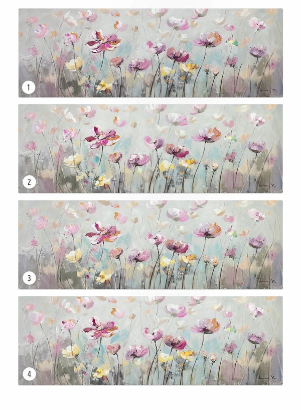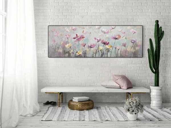 Un ‘Rêve floral’ enchanteur fait de fleurs sauvages roses et jaunes s’étend sur cette élégante peinture acrylique, ce qui crée une ambiance relaxante. Le motif extraordinaire vous captive avec raffinement et sensibilité. Il transforme votre salle à manger en un lieu où vous vous sentirez vraiment à l’aise. Avec cette peinture, vous pourrez accueillir vos invités dans une atmosphère détendue et naturelle.