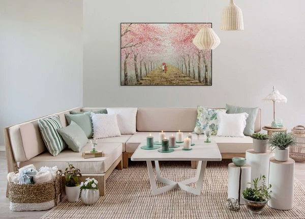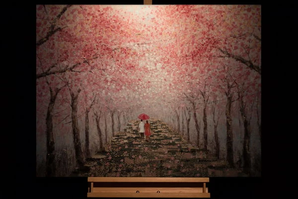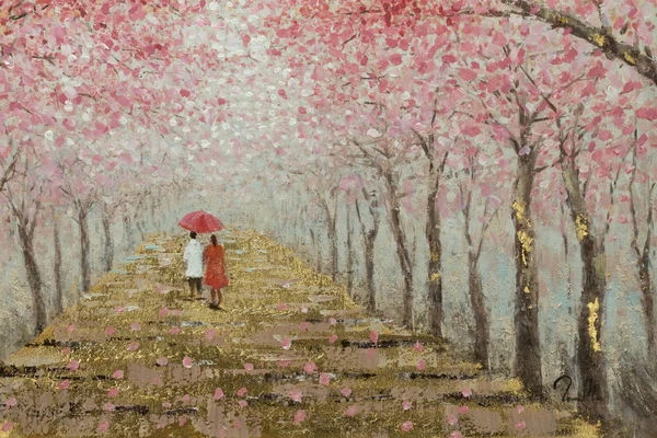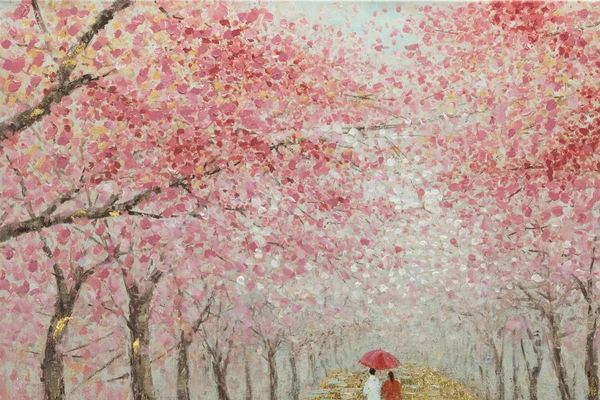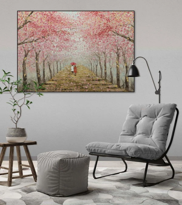 ‘The Most Beautiful Feeling’ consiste à marcher bras dessus bras dessous le long d’un chemin sous un toit de fleurs roses. Enrichissez votre maison avec cette peinture acrylique comme décoration de votre chambre. Le rose délicat des arbres peints à la main qui forment ce paysage idyllique, ainsi que la décoration dorée étincelante, dégagent une atmosphère romantique. Ainsi, le spectateur se sent en sécurité et peut sentir l’odeur du printemps.