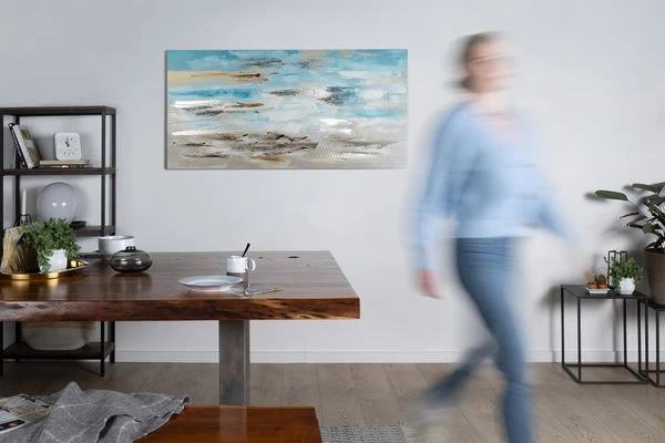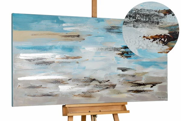 Le tableau acrylique ‘Vagues dans la brume du matin’ peint à la main est l’une de nos œuvres d’art les plus populaires. La représentation abstraite de la mer dans des tons gris et bleus avec des lignes argentées vous rappellera une côte à l’aube. Les vagues roulent doucement sur le sable et l’air frais sent agréablement le sel. Emmenez vos visiteurs dans ce lieu enchanteur et faites naître une atmosphère de bien-être dans votre salon.