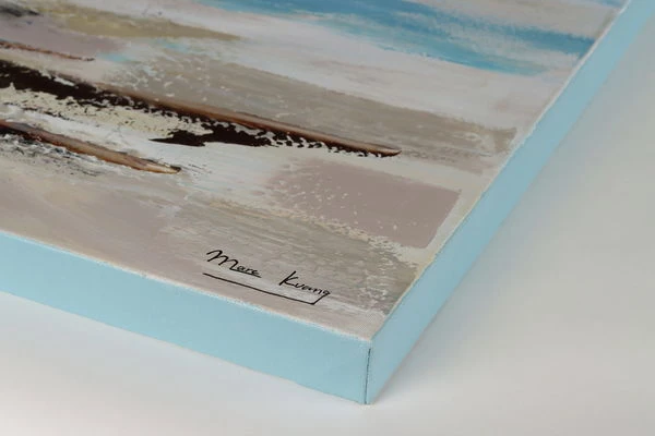 Sur le tableau acrylique peint à la main ‘Vagues dans la brume du matin’, vous pouvez sentir chaque coup de pinceau, ce qui permet de reconnaître au premier coup d’œil la qualité supérieure de l’œuvre d’art. Chaque chef-d’œuvre peint à la main est en outre complété par la signature de l’artiste..