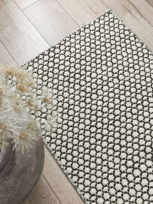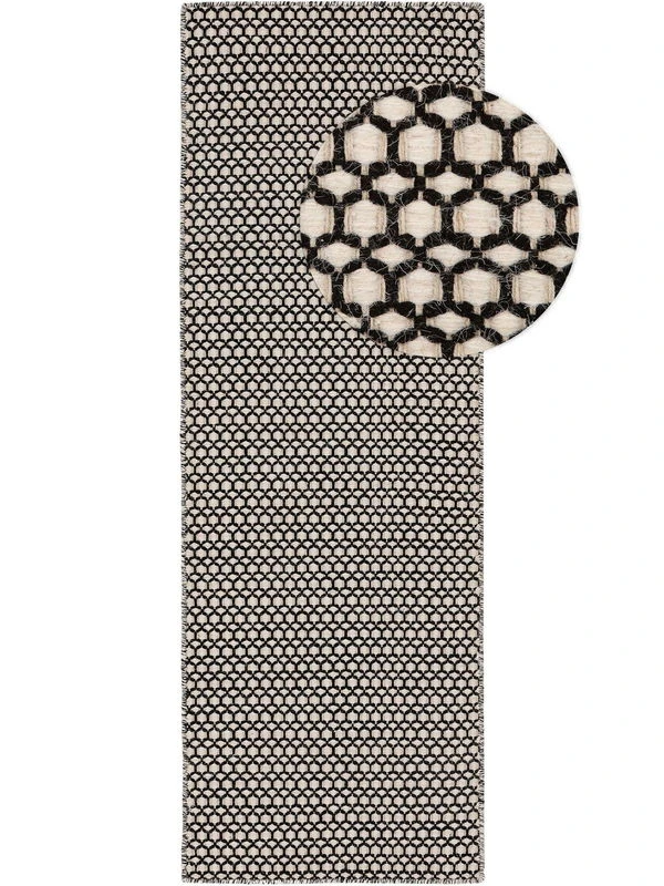 Le tapis ‘Hector Beige/Black’ convainc par son design unique et sa finition soignée, ce qui en fait une article unique dans chaque maison. Sa production s’effectue dans le respect de la durabilité et dans l’exigence d’une qualité élevée.