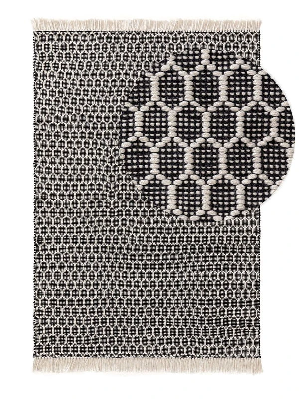 Le tapis ‘Mimpi White/Black’ convainc par son design unique et sa finition soignée, ce qui en fait une article unique dans chaque maison. Sa production s’effectue dans le respect de la durabilité et dans l’exigence d’une qualité élevée.