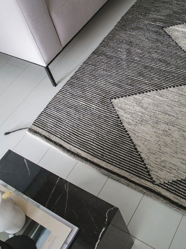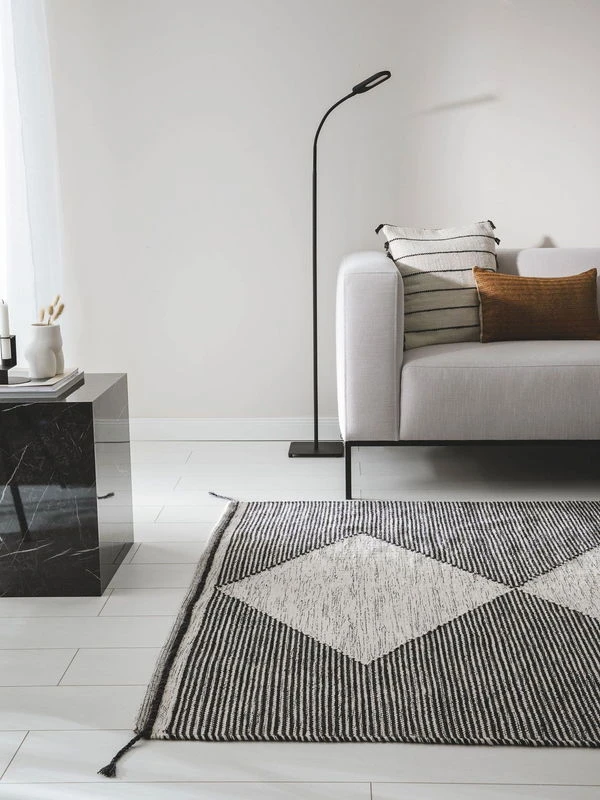 Le tapis ‘Nahla White/Black’ convainc par son design unique et sa finition soignée, ce qui en fait une article unique dans chaque maison. Sa production s’effectue dans le respect de la durabilité et dans l’exigence d’une qualité élevée.