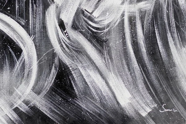 Pastoses Danses blanches‘Avec plaisir’ sur fond noir de la peinture à l’huile peinte à la main dans un format extraordinaire. L’artiste Summer Xia crée une harmonie complexe de couleurs élémentaires contrastées, qui créent une interaction dynamique et envoûtent le spectateur d’une manière vitrée.
