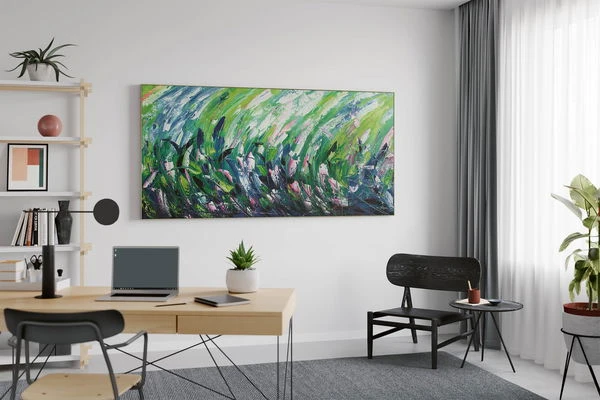 qualité professionnelle. Un système d’accrochage pratique est fixé au dos de chaque tableau en toile tendu sur un châssis. Le matériel de fixation (2 vis d’angle + 2 chevilles) est fourni.