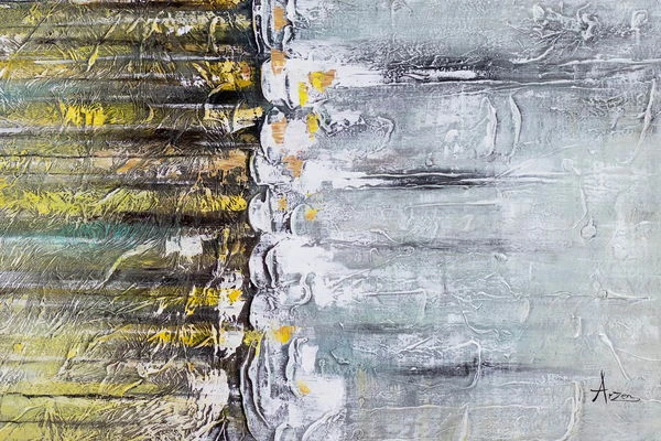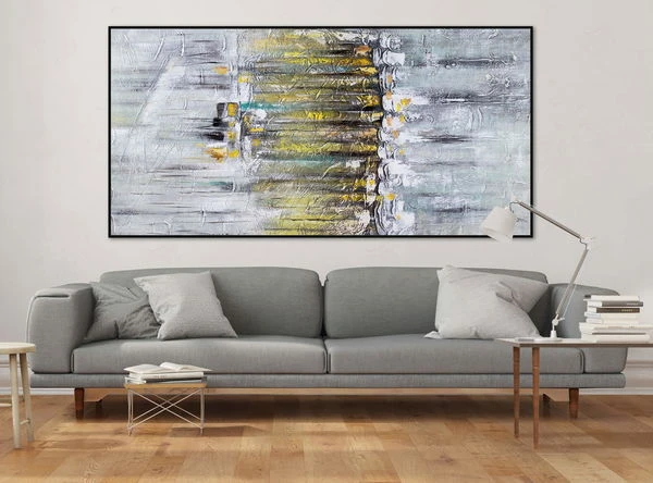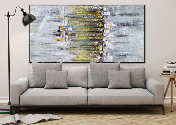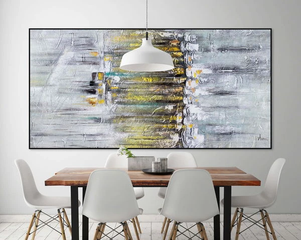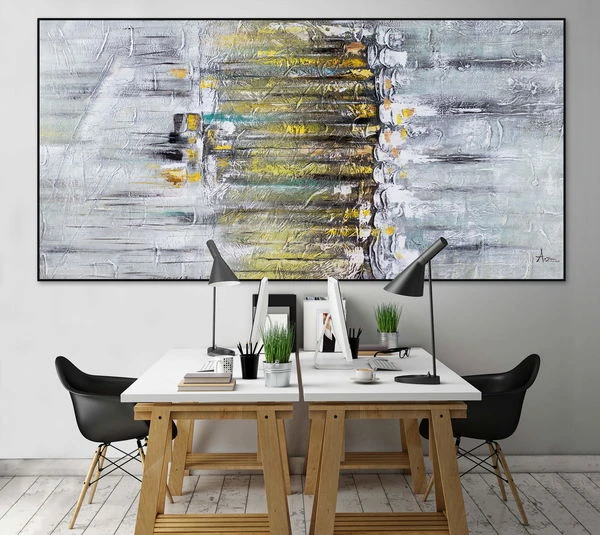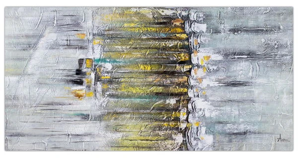 Avec le tableau peint à la main’Intense Illusions’, l’artiste cède à Arzen les énigmes artistiques sur le tableau : Comme si le soleil se levait d’un ciel nuageux, le jaune pâteux se détache du fond gris et illumine la remarquable grande peinture à l’huile avec sa luminosité radieuse – une œuvre d’art pleine d’élégance abstraite.