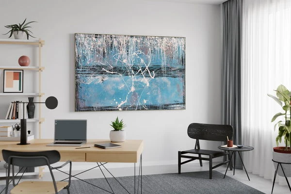 Les » temps ludiques » l’emportent sur la peinture à l’huile grand format de l’artiste Rick Lim. Le spectacle en couleur est composé de gris et de bleu dans le style Impasto et convainc le spectateur par sa puissance spirituelle. Les événements peints à la main dans un style fortement abstrait rappellent la voûte du ciel, fondée dans l’éternité.