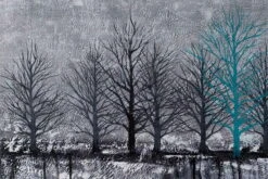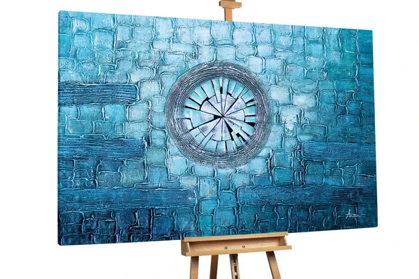 Dans le’Gate to Time’, un jeu de couleurs vertes et bleues se dessine qui, au centre peint à la main de la peinture à l’huile abstraite, forment un portail extravagant avec des détails en argent. Au milieu du mur de pierre, un mystérieux portail mène à l’inconnu, que l’artiste a créé Arzen dans une pastorale discrète.